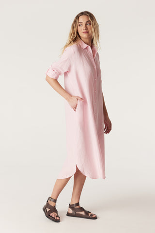 The Pure Linen Shirt Dress is a timeless best-seller crafted from a light and soft linen fabric. Detailed with an adjustable 3/4 length sleeve, a slight high low curved hem and relaxed fit.
