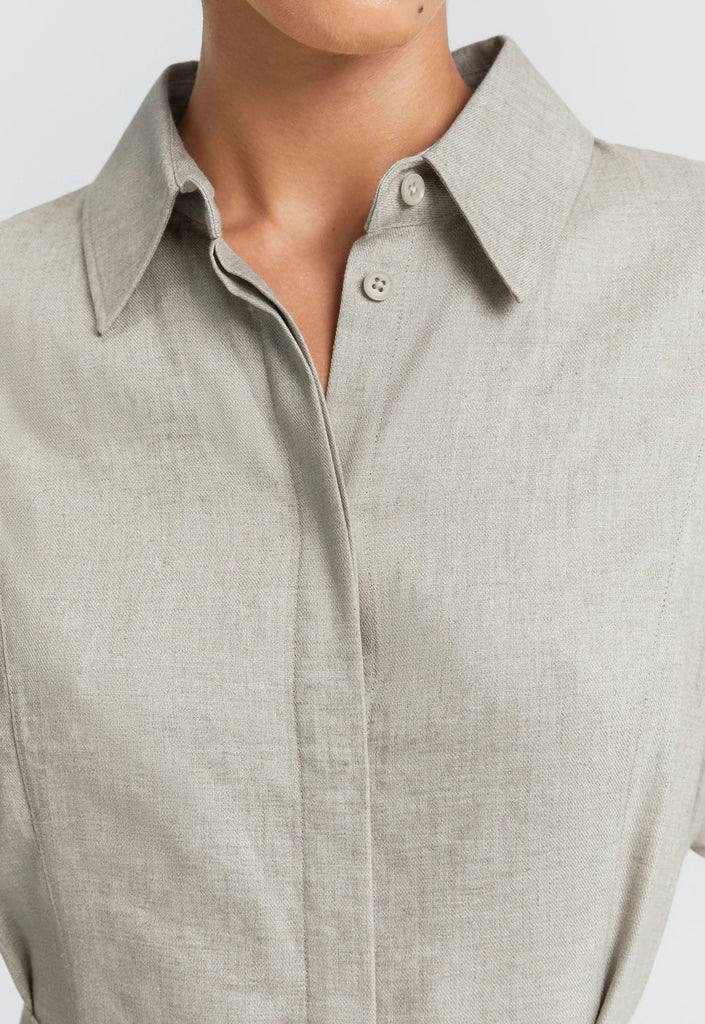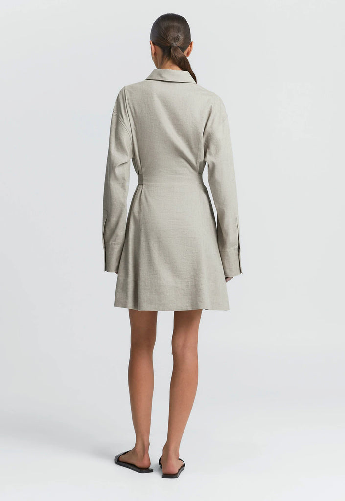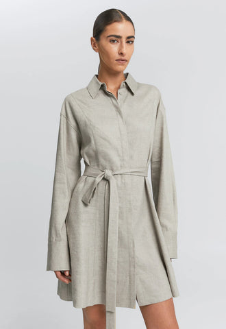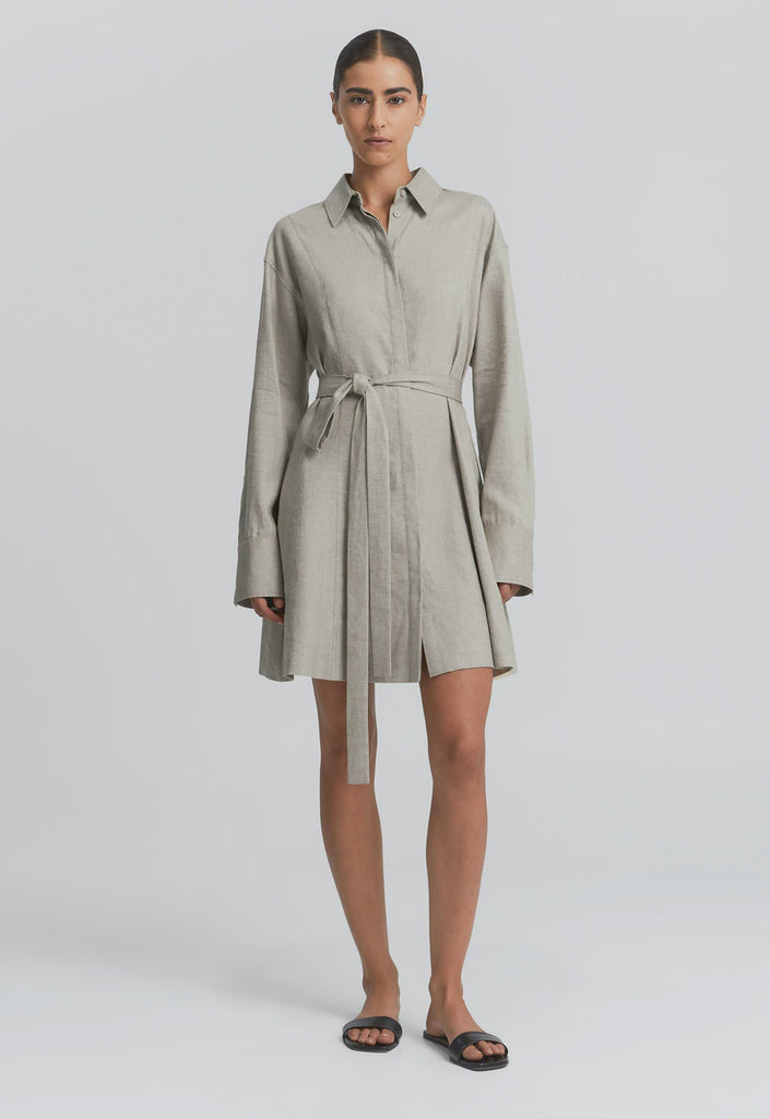 Made from a breathable linen-rayon blend, this dress offers the airy feel of linen with the soft drape of rayon. The fabric's natural slub, subtle texture, and gentle creasing are considered part of its unique character. Designed with a concealed placket, in-seam pockets, and a versatile waist tie that can be styled multiple ways - this is effortless dressing, elevated.