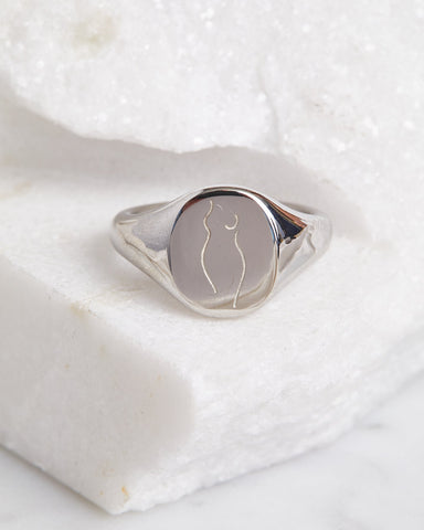 Gorgeous oval signet ring, with an minimal lady engraved - hand drawn by our resident artist Isabella MacKirdy