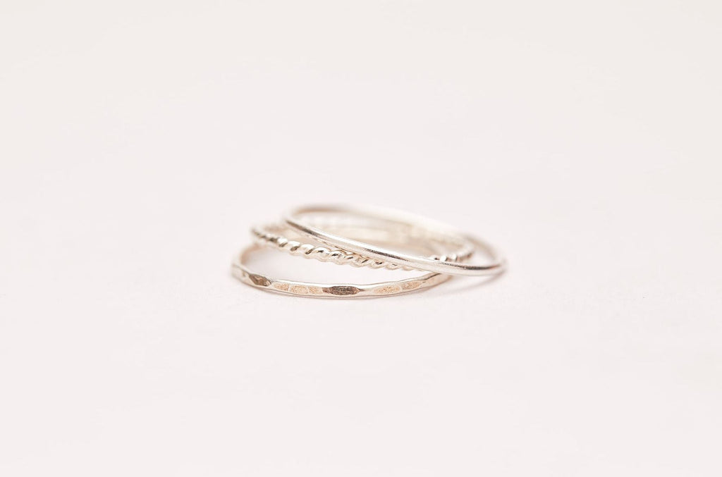 1x smooth, 1x twisted and 1x hammered stacking ring