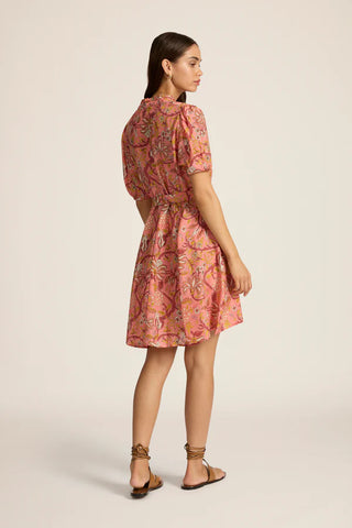 Add a playful touch to your vacation wardrobe with our silk habotai Gaia Dress. Adorned with billowing puff sleeves and a ruffled collar, this hand screen printed beauty will take you from beach to bar with ease. Pair its vibrant floral print with simple sandals and a rattan bag for effortless style.