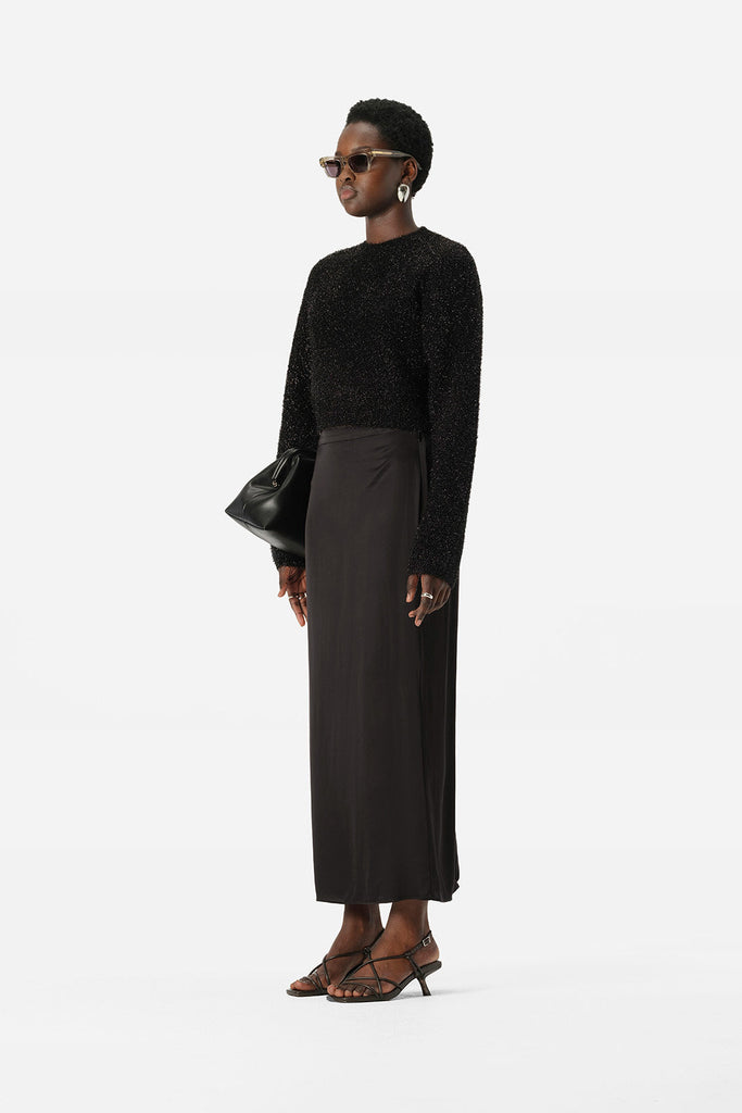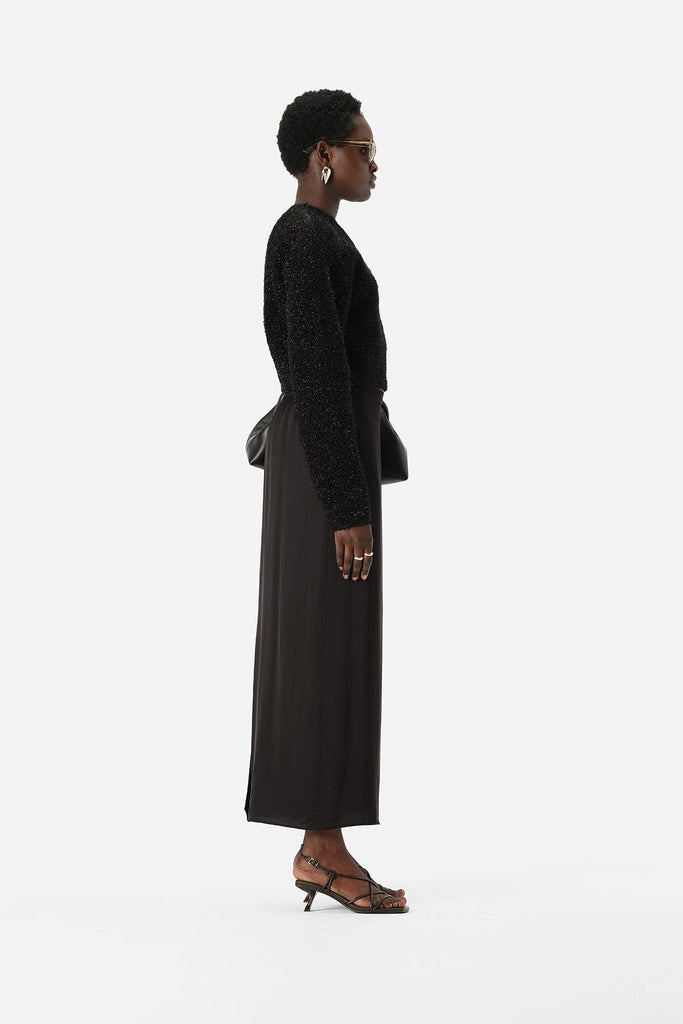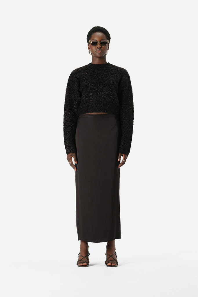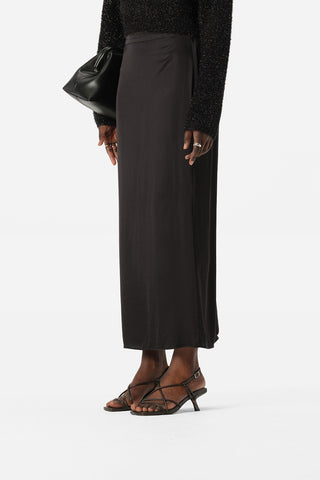 A timeless piece like the Emi Skirt is a true wardrobe essential for transitioning through the seasons. This maxi length skirt is made of a soft and silky fabric blend with a light stretch for comfort. This skirt is fitted with a half-elastic waistband and invisible side zip for a secure fit. The Emi Skirt is fully lined and ideal for desk to dinner table outfitting.