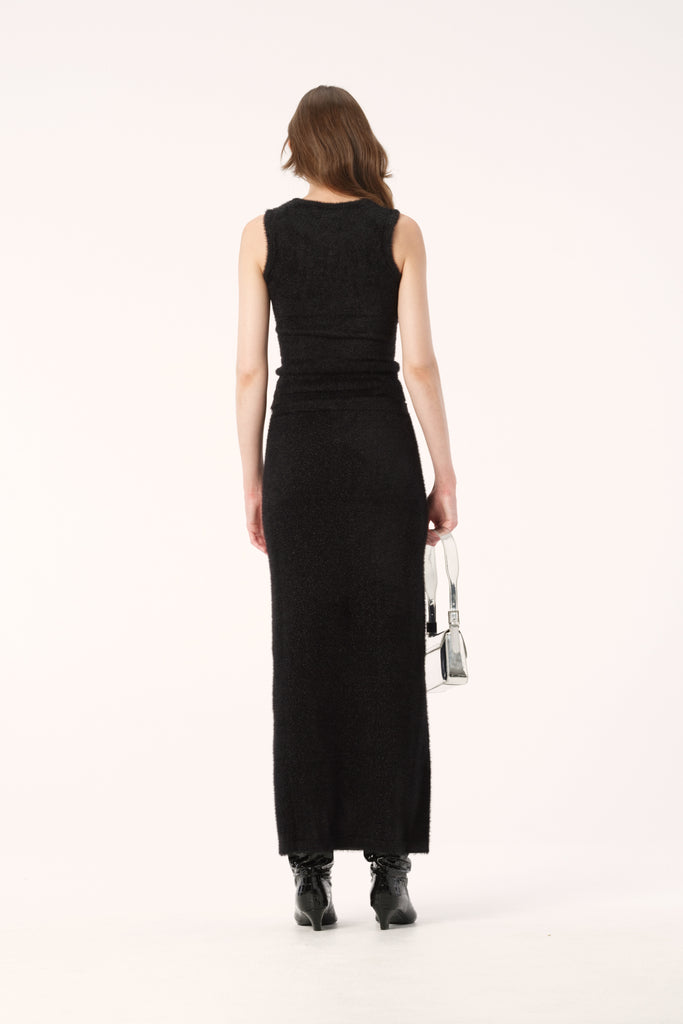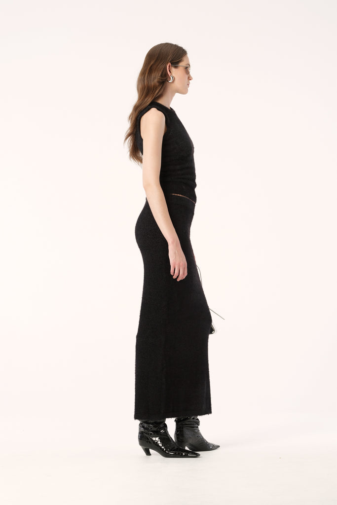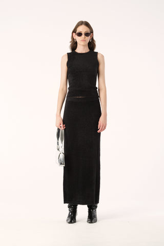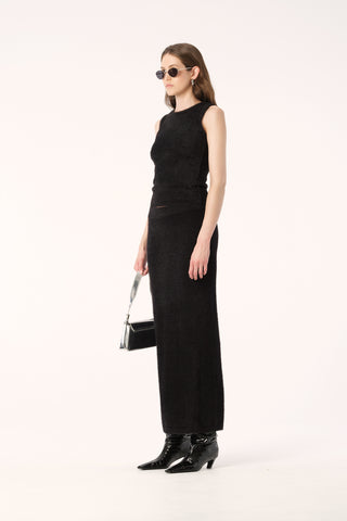 Embrace a subtle statement piece for day to night outfitting like the Harvie Skirt. This maxi length skirt is made of a luxe knit fabric with a soft texture and metallic detailing that remains delicate yet on trend. The Harvie Skirt has a high waisted fit with ribbed waistband and hem, and a straight silhouette to lengthen the figure. With ample stretch throughout, this skirt remains comfortable for all-day wear. Style with basics or colour-match knitwear like the Harvie Tank.