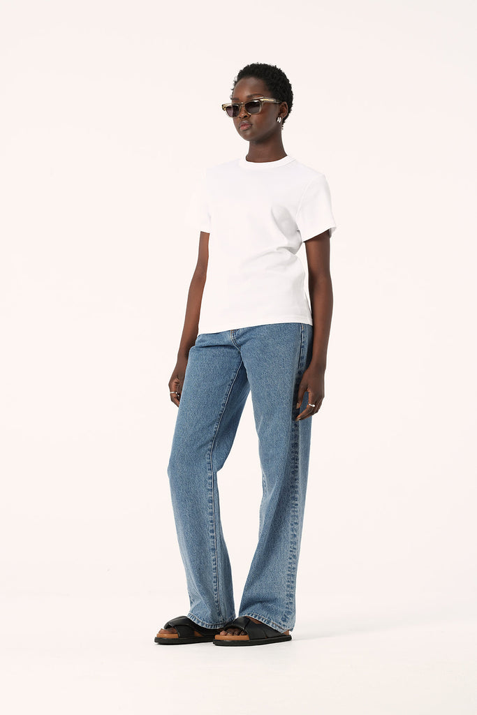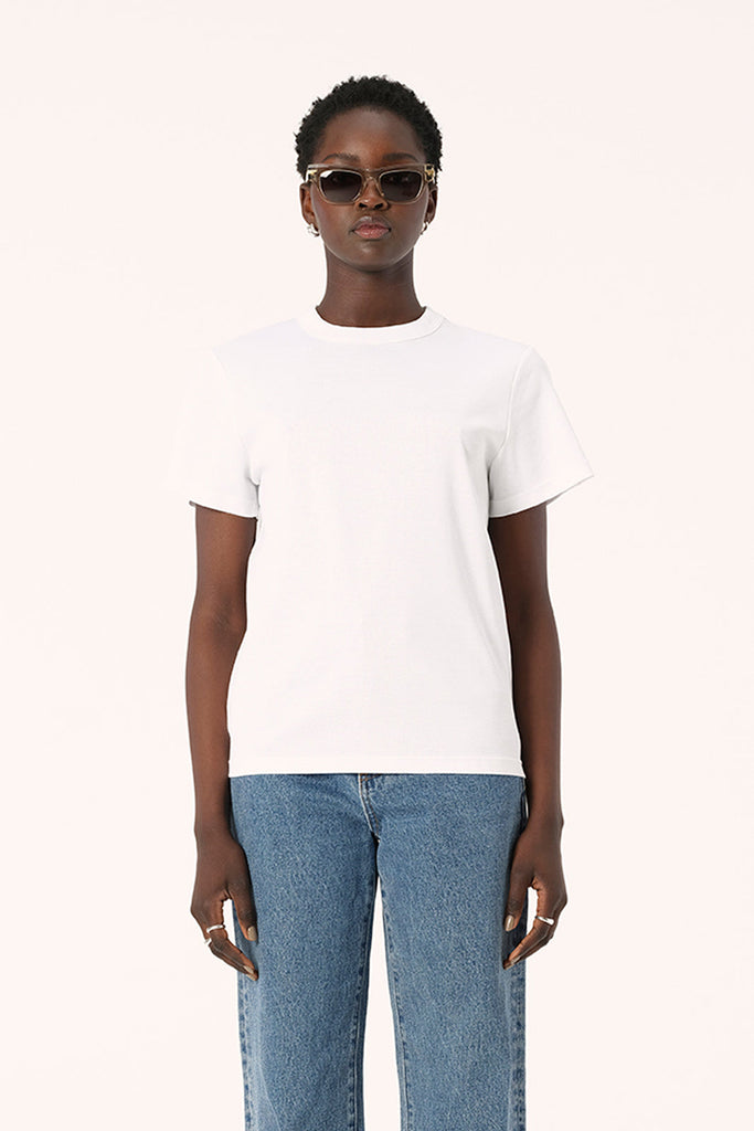 Part of our premium basics range, the Zoe Tee in White is a true wardrobe staple. Crafted from our soft organic cotton this t-shirt is a sleek and comfortable option for easy casual outfitting in any season. With a classic short sleeve design, crew neckline, and slightly oversized, boxy fit, the Zoe Tee can be styled with all skirts, jeans and suiting options from work to weekend.