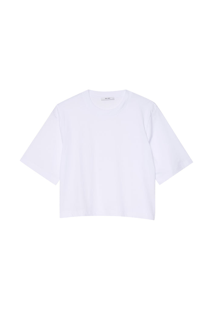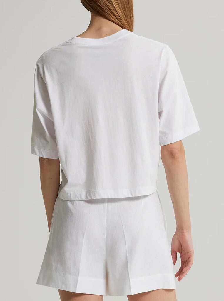Crafted from 100% organic cotton jersey this cropped oversized tee is the new essential of the season. Designed with elbow length sleeves and a waisted hemline, this piece features a relaxed fit that feels effortlessly cool and modern. Wear back with high waisted bottoms for an easy yet elevated approach.