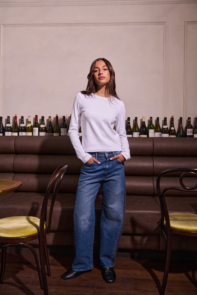 Cole. A long sleeve basic made from cotton ribbing for slight stretch and comfort. A perfectly more-fitted piece in your wardrobe for styling underneath our oversized coats and slouchy pants. Cut in bold colour to coordinate with key pieces of the season.