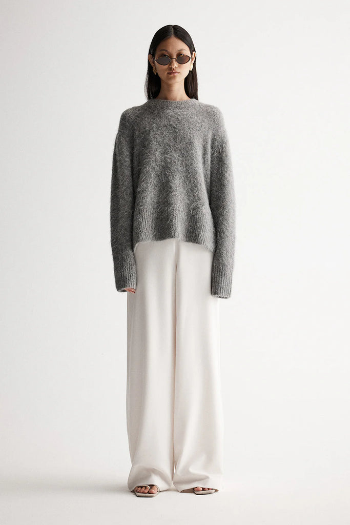 Returning to a classic silhouette, the Tallulah Knit adds a soft, cosy layer into your outfit rotation. Made of a lush alpaca wool blend, this knit is crafted to a relaxed fit with full length sleeves, a crew neckline, and ribbed detailing. With a textured handfeel, this knit becomes a winter essential ideal for softening a sharp tailored look and layering under oversized outerwear.