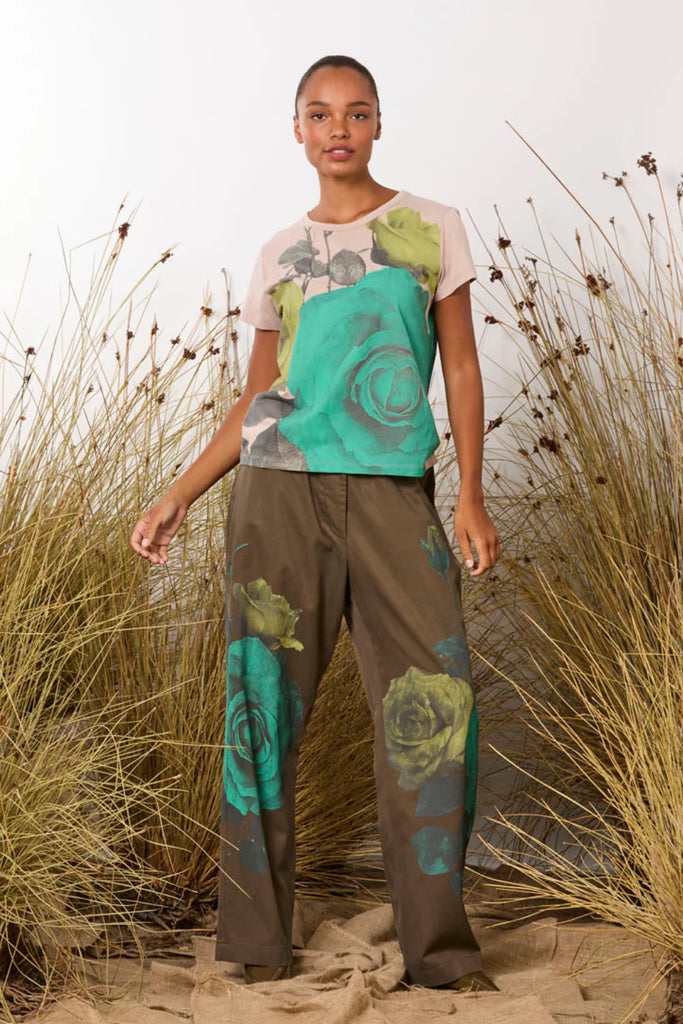 The Journal Pants are a silky, comfortable option that can be dressed up or down. Featuring a wide-leg silhouette, these long pants are adorned with bold rose prints for a standout look. A drawstring waist ensures a customizable fit, while two side pockets add practicality without compromising style.