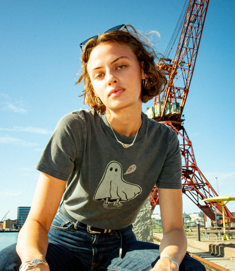 Crew neck tee in clean, crisp organic cotton jersey with a dry hand. The faded shade and vintage look result from the garment dye and, on top of that, a fade-out wash. This gives the lived-in outlook we think goes so well with denim. The color will continue fading as you wear and wash it. Print on the chest.