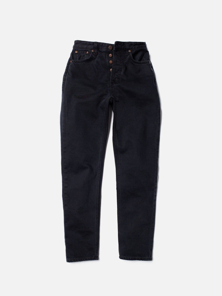 We love how black denim fades, and this one perfectly showcases those first steps. It has some worn-in qualities to it, but as far as breaking in goes, you get the opportunity to make more it personal. Breezy Britt is a classic regular, tapered fit with a high waist. We make it exclusively with rigid denim.