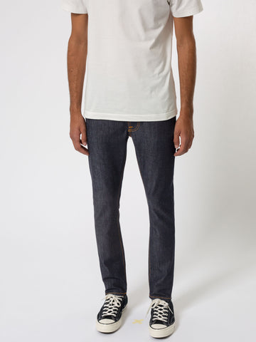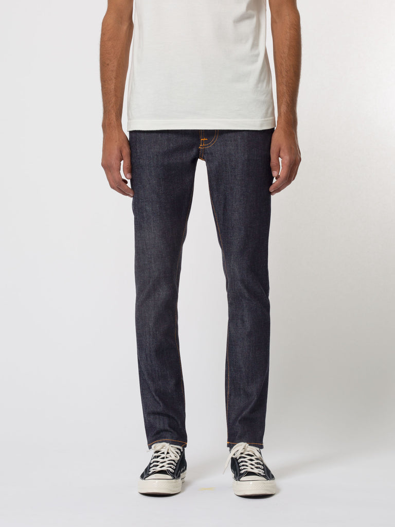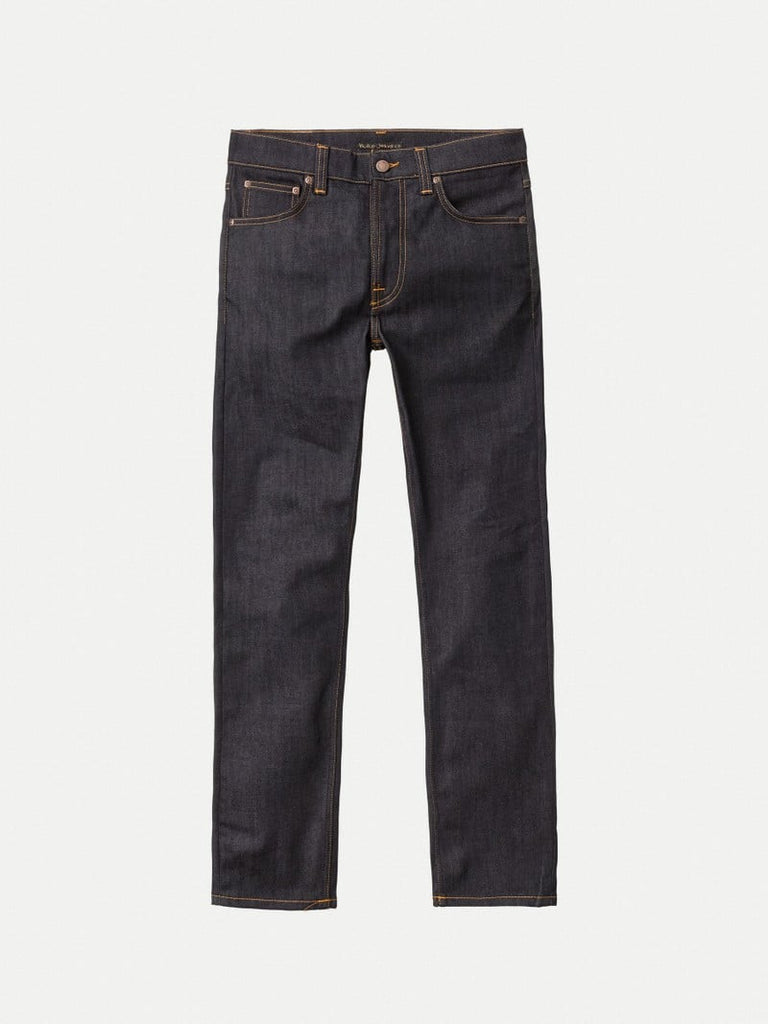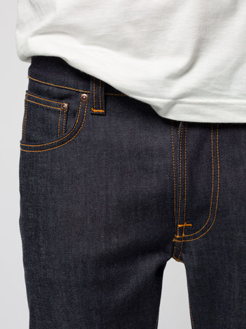 Jeans made in comfort stretch denim. Like the name implies, this dry, deep blue, option has been through 16 indigo dips. Unlike other stretch denim, these are not rinsed, so they are stiffer, and will shrink a bit more. Account for inseam shrinkage of 2% and 4.5-6% in width. Thus, sizing down is not recommended.