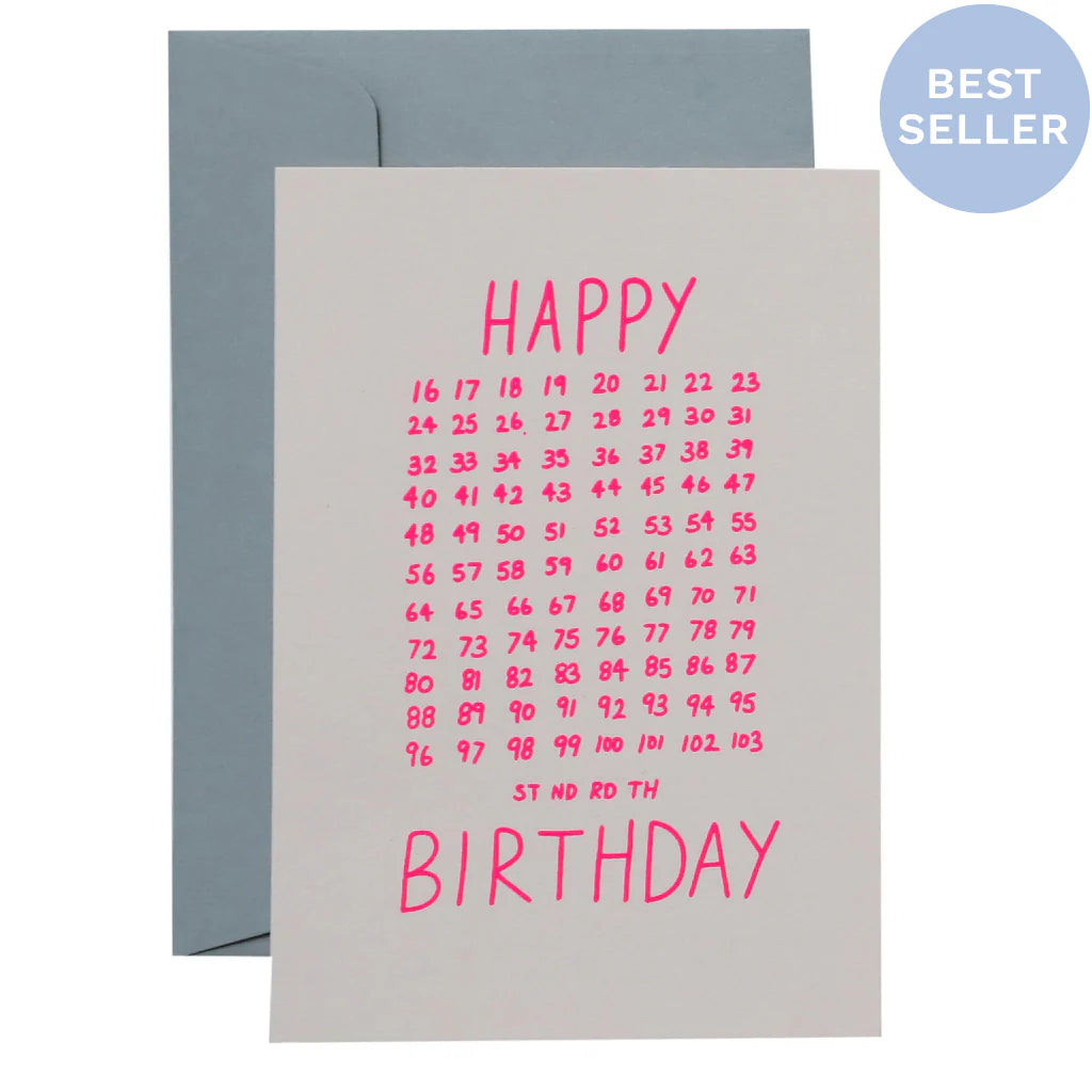 From sweet 16th to extraordinary 103rd and everything in between, we've got you covered with this birthday card. And it's lovingly screenprinted by hand in our Sydney studio.