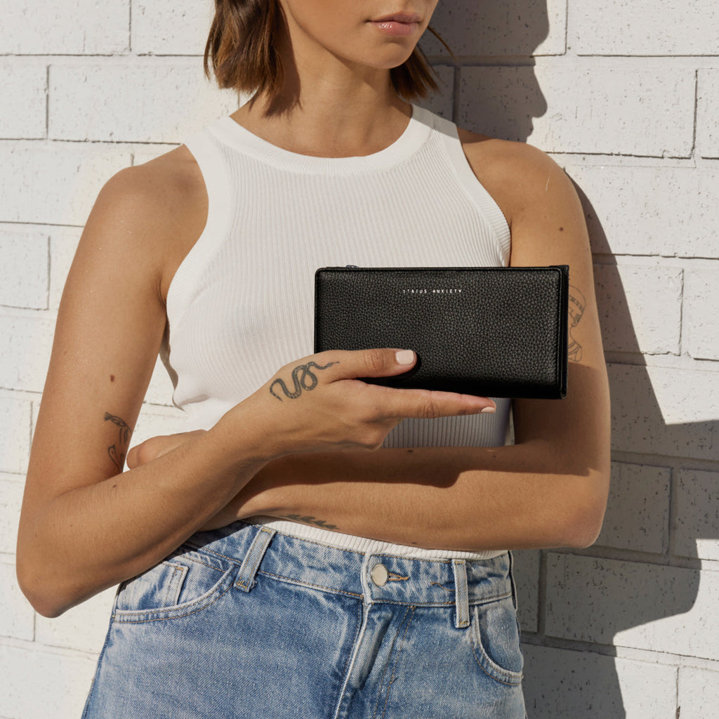 Like a former lover you can't get over, 'Old Flame' will have you hooked. Made from soft shrunken pebble leather and finished with custom Status Anxiety gunmetal hardware. The outside zipper section makes for easy access to your cash without having to open the main section of the wallet, whilst the alternate card slots ensure the wallet stays compact even when full.