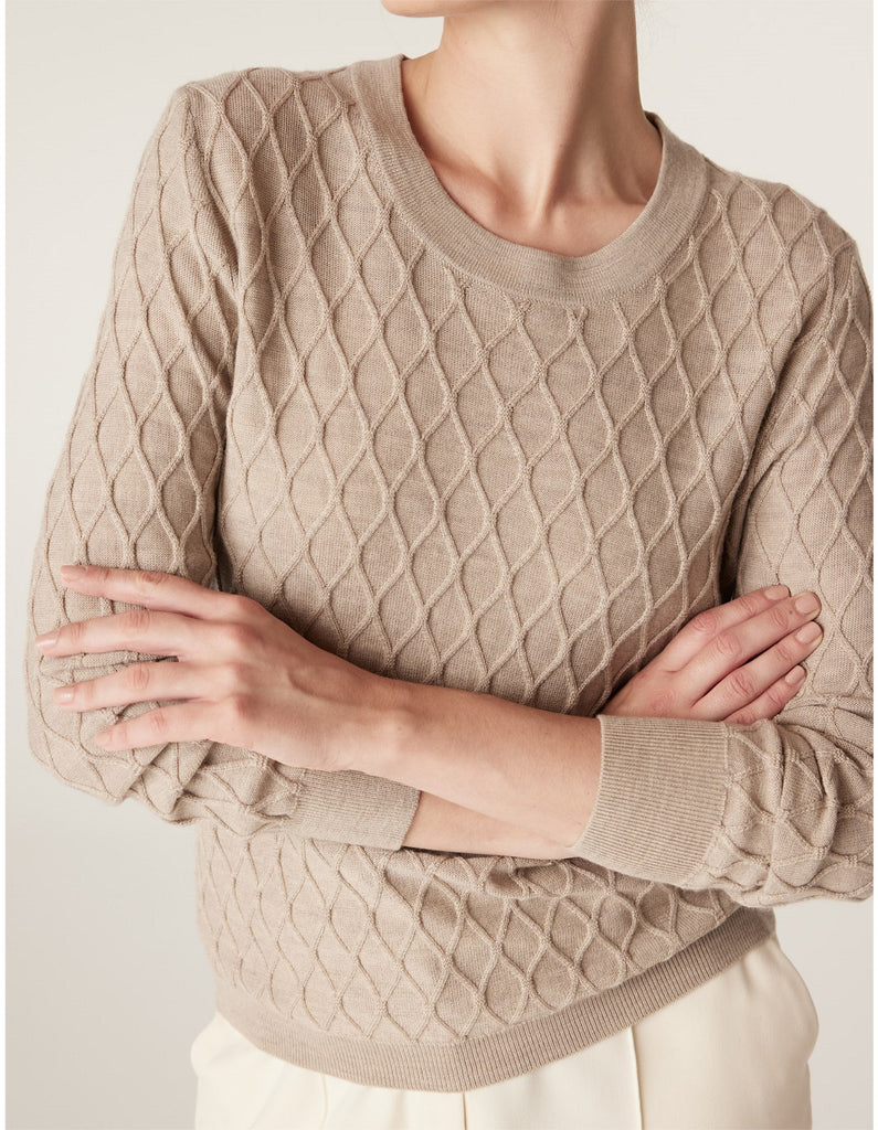 • Diamond cable stitch detail throughout