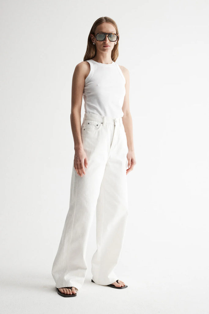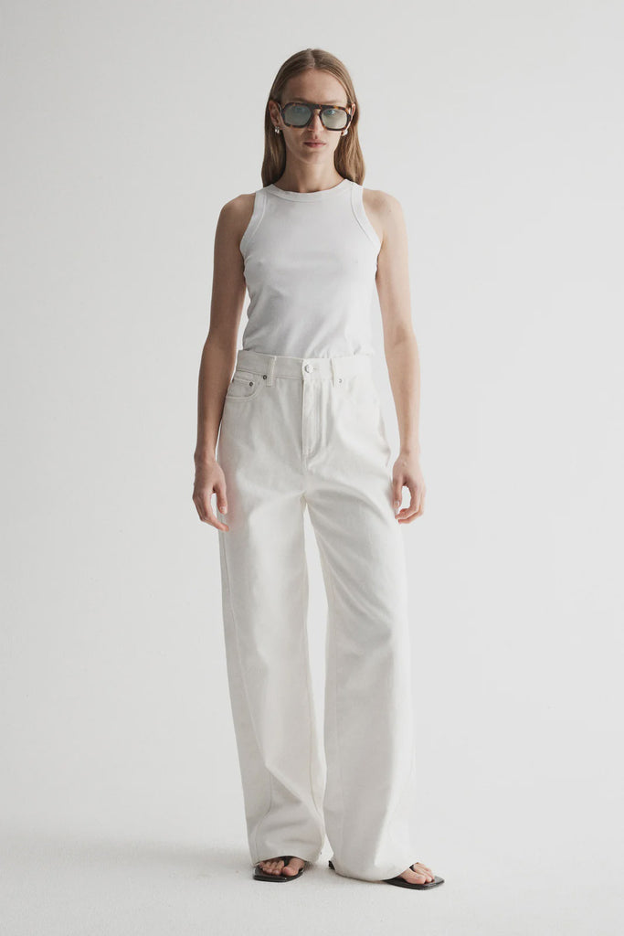 Part of our premium basics range, the Zoe Tank in White is a true wardrobe staple. With a classic sleeveless design, crew neckline, and regular fit, this tank is sleek and comfortable. The wide self-bind finishing on the neckline and arm holes sets it apart with an elevated look ideal for pairing with jeans and suiting options.