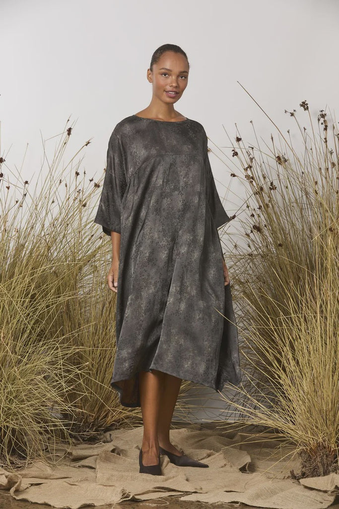 The Circular by M.A.Dainty Playground Dress in black oriental floral is your go-to for effortless style and comfort. It drapes beautifully over the body, offering a relaxed silhouette that moves with you. The flowy shape and 3/4 length sleeves make it a versatile piece for both casual wear and dressed-up moments.